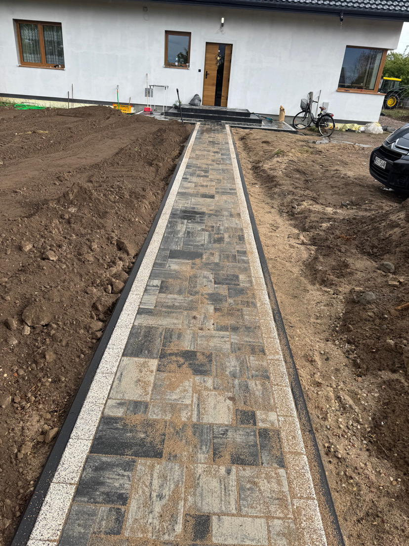 Precyzyjnie montujemy elementy wykończeniowe, które nadają estetykę i stabilność całej konstrukcji. Umożliwiają one odpowiednie wyznaczenie granic nawierzchni i zapobiegają jej rozchodzeniu się.